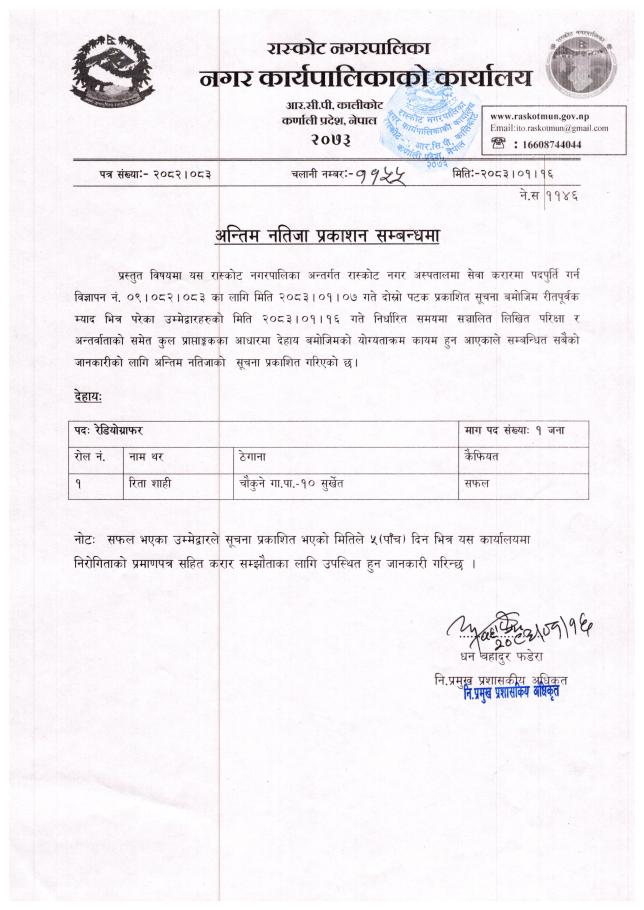 अन्तिम नतिजा प्रशासन सम्बन्धमा ।