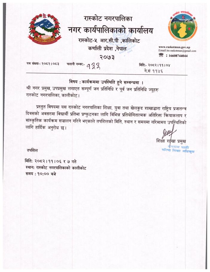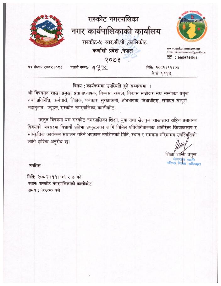 कार्यक्रममा उपस्थित हुने सम्बन्धमा ।