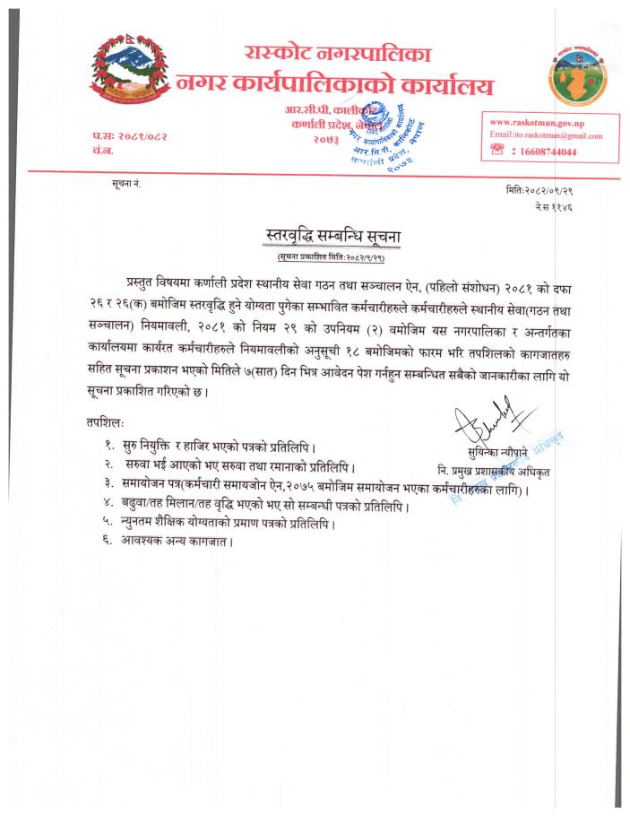 स्तरवृद्धि सम्बन्धि सूचना ।