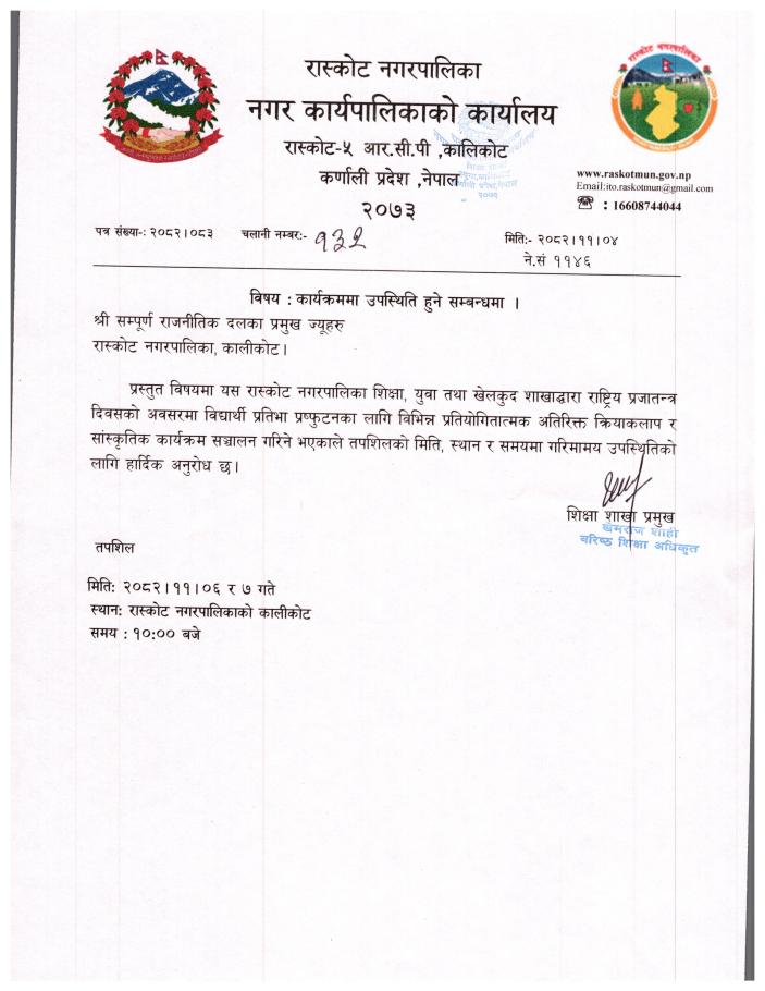 कार्यक्रममा उपस्थित हुने सम्बन्धमा ।