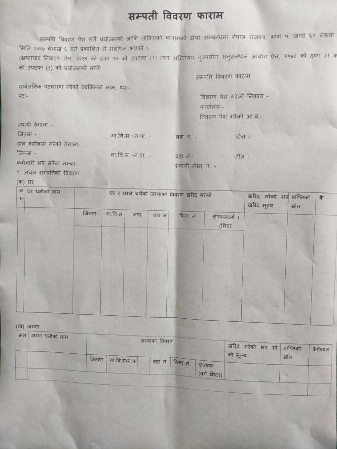 सम्पति विवरण फारम भर्ने सम्वन्धमा ।।।