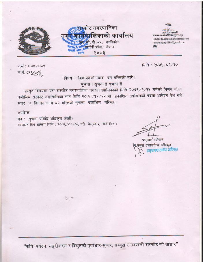 सूचना प्रविधि अधिकृत पदको दरखास्त दिने म्याद थप सम्वन्धी सूचना !!!